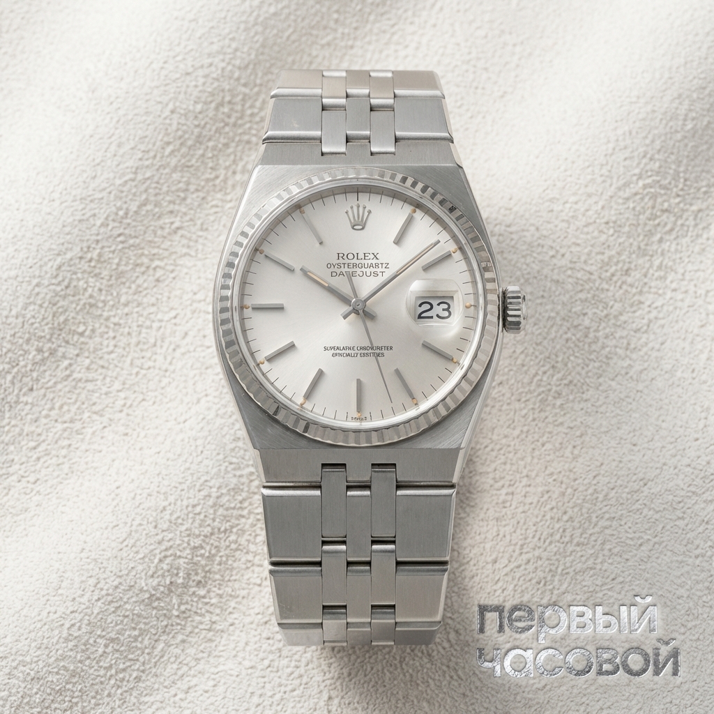 Кварцевый Rolex — это тот самый случай, когда разрыв шаблона идет на пользу коллекции. Перед нами Oysterquartz 17014A, и это, пожалуй, самые недооцененные часы бренда, которые сейчас стремительно набирают инвестиционный вес. Сразу к делу: это не дешевая «батарейка», а термокомпенсированный калибр 5035, который инженеры Rolex разрабатывали пять лет. Это «трактор», способный пережить большинство современной механики, при этом тикает он так громко и четко, что звук слышно в тишине — фирменная черта модели.