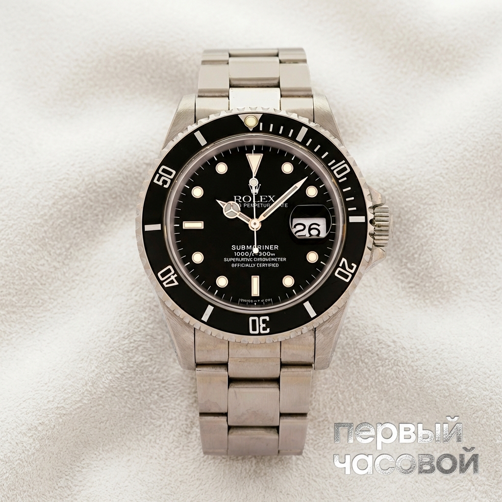 Пятизначный референс с тритием — это уже не просто часы, а актив с высокой ликвидностью. Перед нами «последний настоящий» Rolex 16610 до эры керамики и раздутых корпусов. Главный интерес здесь представляет именно тритий на циферблате: в отличие от современной Super-LumiNova, он не светится как фонарь, зато со временем метки приобретают благородный кремовый оттенок, который так ценят на вторичном рынке. Тот факт, что в комплекте есть документы — критически важен для инвестиционной привлекательности, отсутствие коробки в данном случае вопрос решаемый и вторичный.