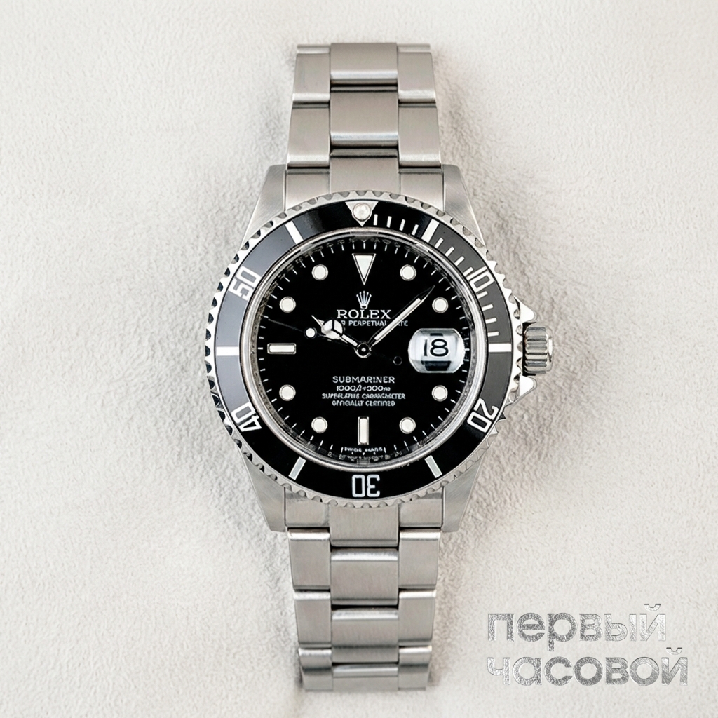 Rolex Submariner Date reference 16610 является эталонным образцом архитектуры дайверских инструментов эпохи нео-винтажа, воплощая баланс между утилитарной функцией и промышленной эстетикой. Корпус Oyster диаметром 40 мм выполнен из коррозионностойкой стали и отличается классической геометрией с зауженными ушками, предшествующей появлению более массивных современных профилей Super Case. Визуальный центр композиции — вращающийся в одном направлении безель с алюминиевой вставкой, материал которой обеспечивает матовую текстуру и отсутствие излишнего глянца, свойственного керамике.