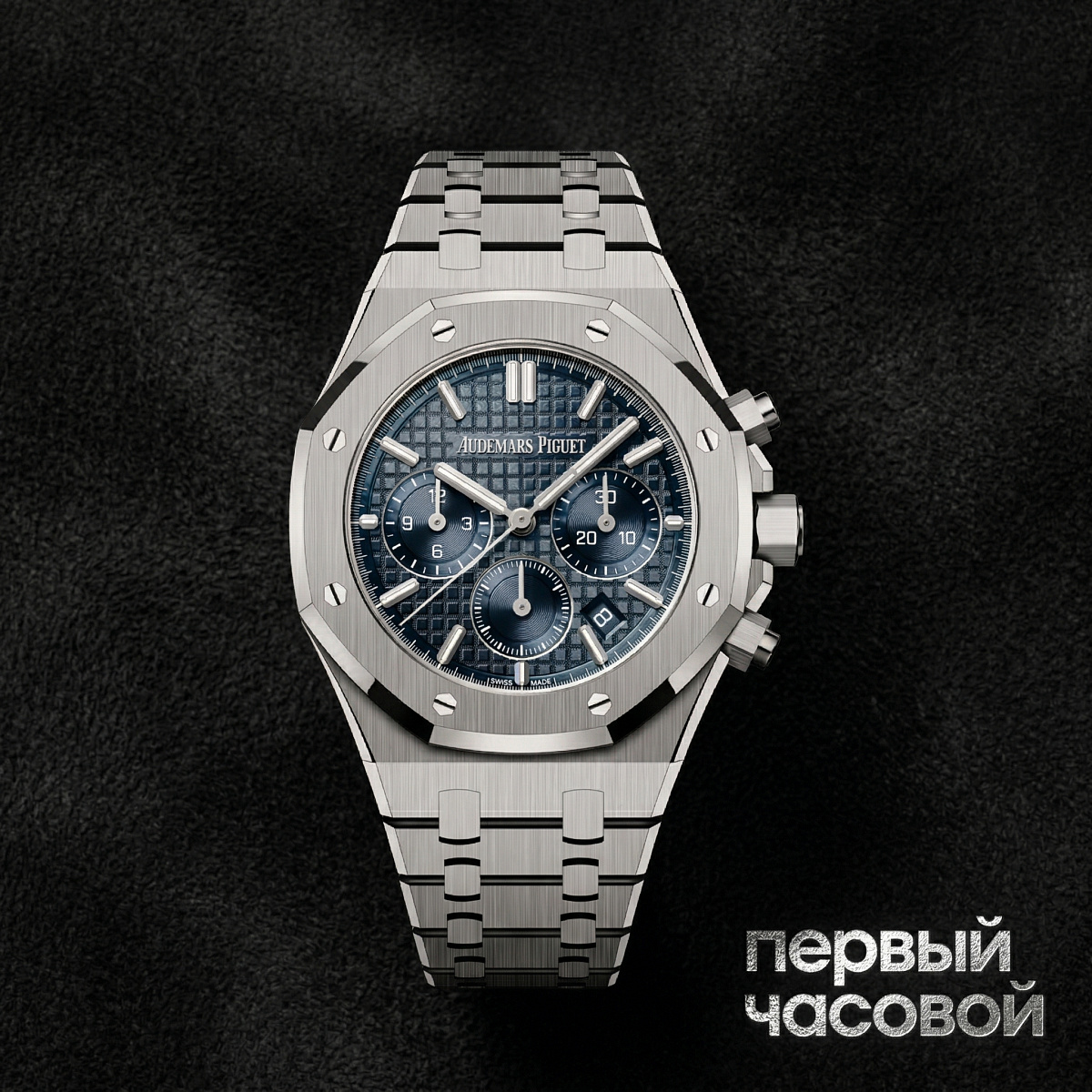 Audemars Piguet Royal Oak Chronograph 26715ST в размере 38 мм с синим циферблатом — это квинтэссенция часового хайпа, за который вам придется серьезно переплатить. Синий цвет у AP традиционно стоит неадекватных денег на вторичке, и здесь вы платите не столько за сложную механику, сколько за узнаваемость и престиж цвета. Размер 38 мм на бумаге звучит скромно, но из-за жестких концевых звеньев интегрированного браслета часы ложатся на запястье как честные 40 мм, так что женскими они точно не выглядят. Фирменная рубленная геометрия корпуса с сатинированием и зеркальными фасками смотрится эффектно ровно до первой недели носки — эта сталь мгновенно собирает царапины от пуговиц и офисных столов. Любая кустарная полировка навсегда убьет грани и автоматически срежет цену часов при перепродаже на сотни тысяч.
