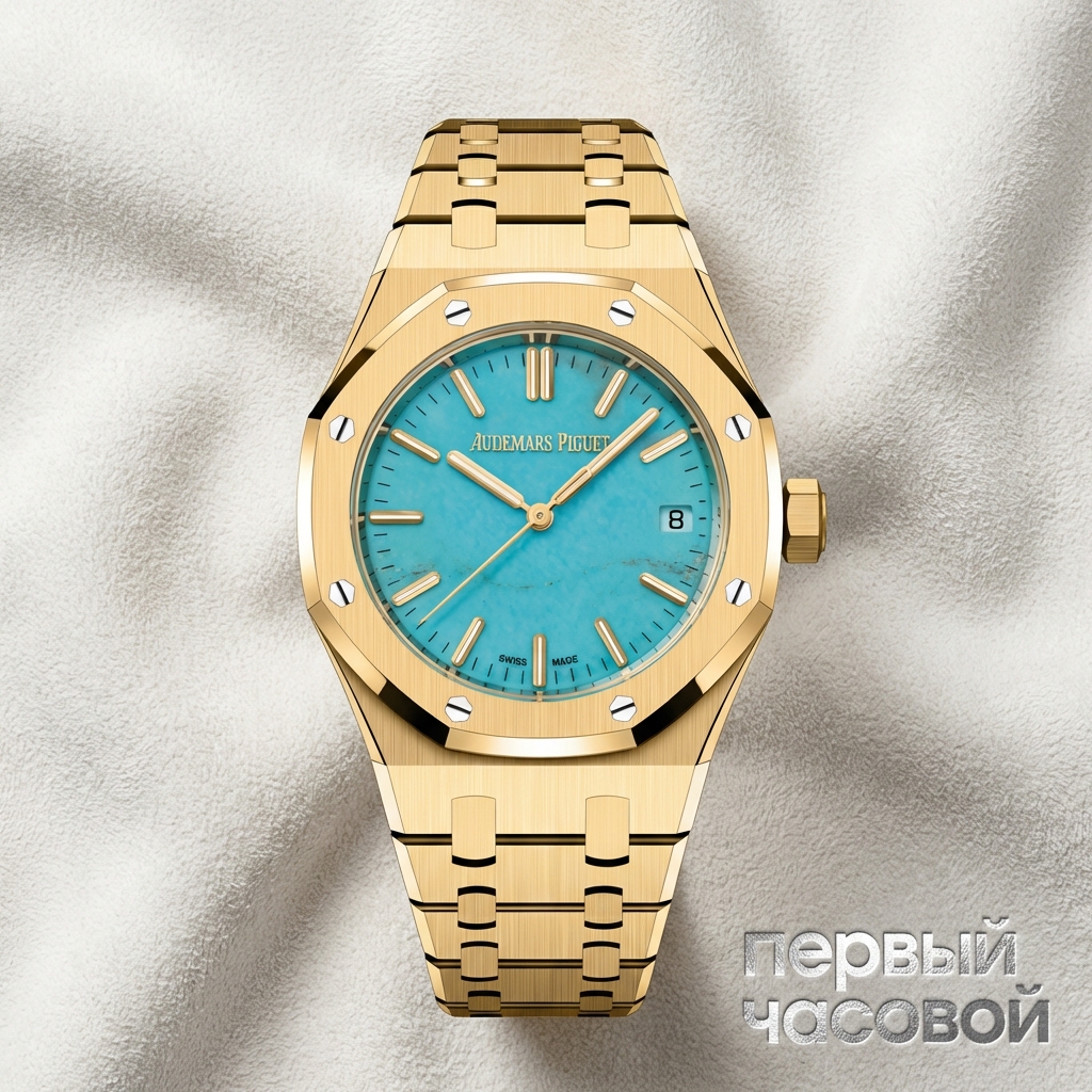 Давайте сразу отбросим сантименты. Перед нами один из самых хайповых «оф-каталогов» последних лет — желтое золото с циферблатом из натуральной бирюзы. Это не базовый Royal Oak, а тяжелый люкс, который покупают, чтобы было видно издалека. Размер 37 мм я считаю самым сбалансированным в линейке AP: он садится на любое запястье, не свисая «шайбой», как 41 мм, и сохраняет пропорции классического джентовского дизайна. Желтое золото мягкое, царапины ловит от воздуха, поэтому наличие заводских пленок здесь критически важно — вы получаете девственный металл.