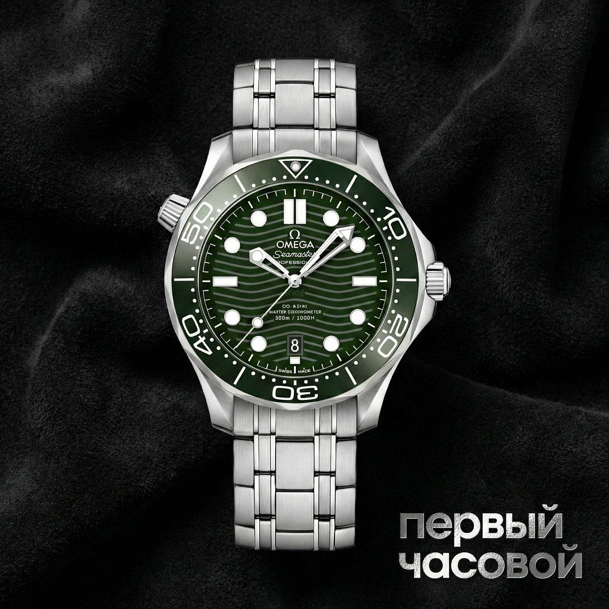 «К этим часам у меня есть вопросы, и вы должны о них знать. В названии модели и у большинства дилеров эта версия зовётся Green Dial — тот самый "болотный" зеленый, за которым все гонялись последние пару лет. Но по факту, конкретно этот референс иногда путают в базах, указывая "синий", хотя артикул 210.30.42.20.10.001 — это жесткая привязка именно к зеленой керамике. Если это действительно "зелень" — вам повезло, это самый востребованный цвет сейчас, который на вторичке держит цену лучше классического Bond Blue.