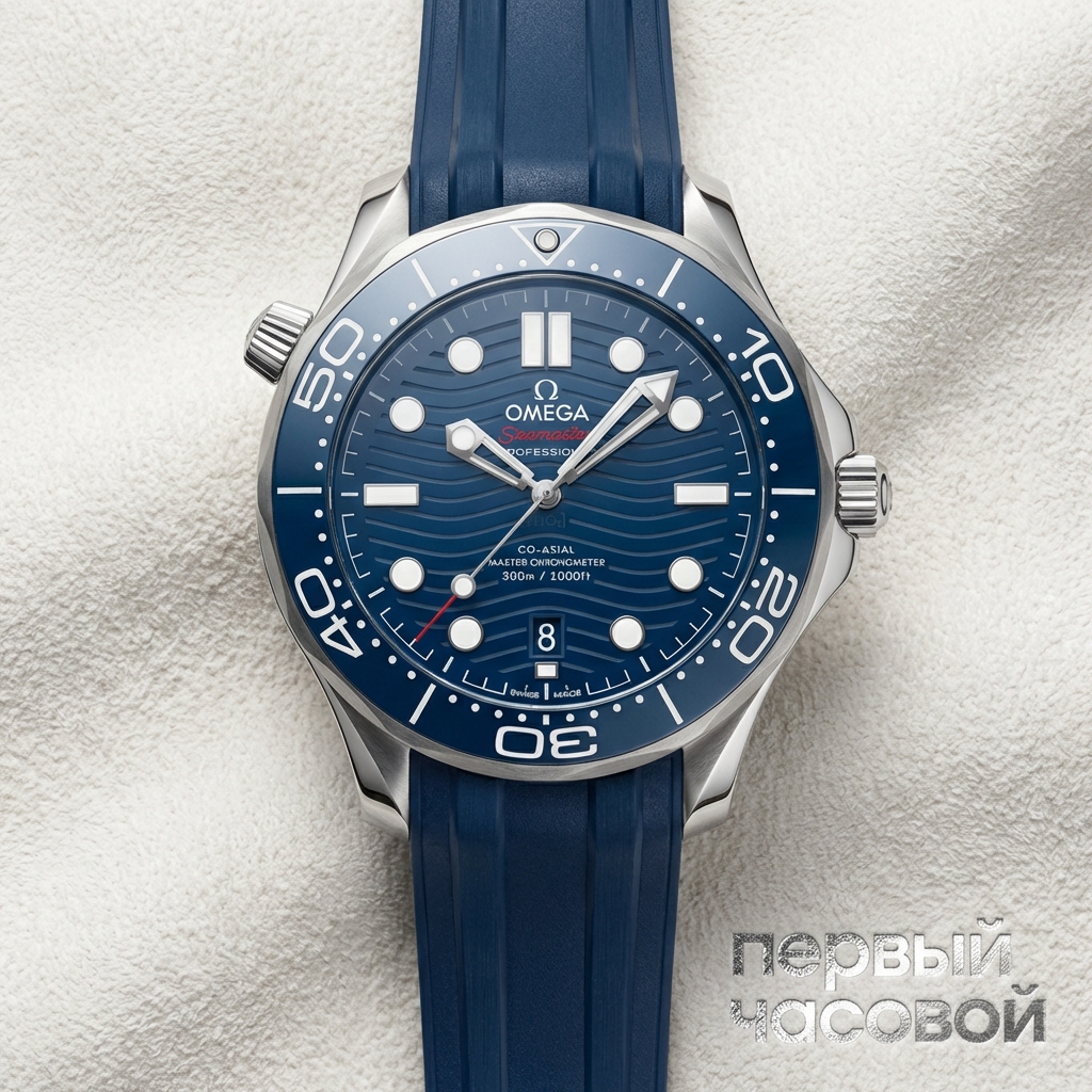Omega Seamaster Diver 300M демонстрирует эталонную архитектуру современных дайверских инструментов, переосмысливая культовый дизайн 1993 года через призму высокотехнологичных материалов. Корпус из нержавеющей стали диаметром 42 мм отличается сложной геометрией с чередованием сатинированных и полированных граней, создающих характерную для мануфактуры игру света. Доминантой визуальной композиции выступает циферблат из полированной синей керамики [ZrO2], на поверхности которого методом лазерной абляции нанесен узнаваемый волнообразный паттерн, придающий текстуре глубину и объем. Однонаправленный безель, также выполненный из технической керамики, оснащен дайверской шкалой из белой эмали, гарантирующей абсолютную устойчивость к выцветанию и коррозии. В положении «10 часов» расположен конический гелиевый клапан, подчеркивающий профессиональную специализацию модели и способность выдерживать давление водного столба до 30 бар.
