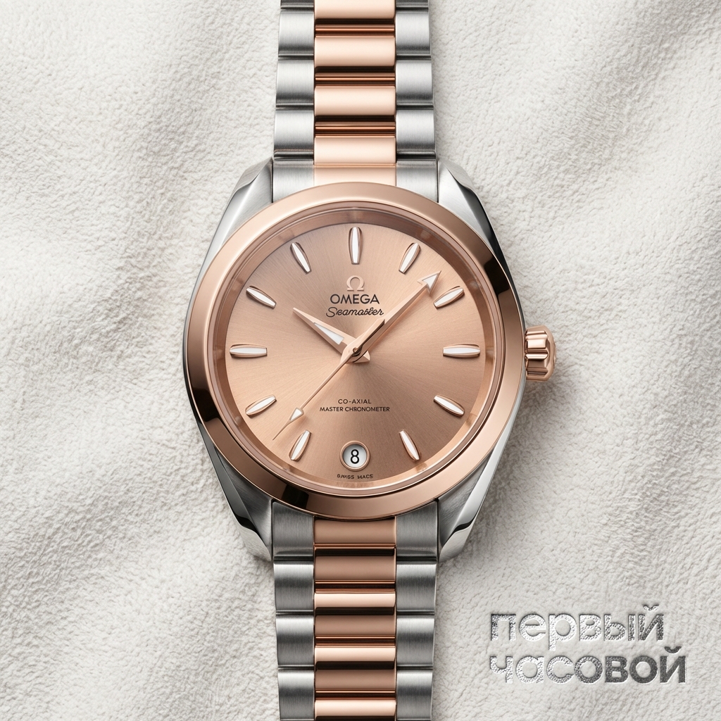 Omega Seamaster Aqua Terra 150M демонстрирует баланс между утилитарной надежностью и ювелирной эстетикой в компактном корпусе диаметром 34 мм. Архитектура модели базируется на биколорном исполнении: шасси из нержавеющей стали дополнено безелем и заводной головкой из фирменного сплава 18K Sedna™ Gold, обладающего повышенной стойкостью к выцветанию и окислению.