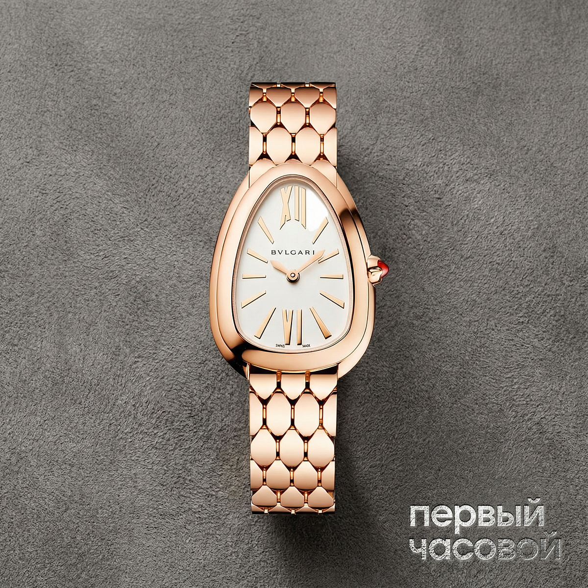 Bvlgari Serpenti Seduttori с референсом 103145 представляет собой современную интерпретацию исторического наследия Serpenti, переосмысляющую культовую форму «змеиной головы» в контексте классических женских часов. Модель 2023 года сохраняет узнаваемую каплевидную архитектуру корпуса, пришедшую на смену традиционным техникам Tubogas, и предлагает более тонкий, эргономичный профиль. Это исполнение в розовом золоте фиксирует текущий этап эволюции эстетики римского дома, сочетая ювелирную доминанту с высокими стандартами швейцарского часового производства.