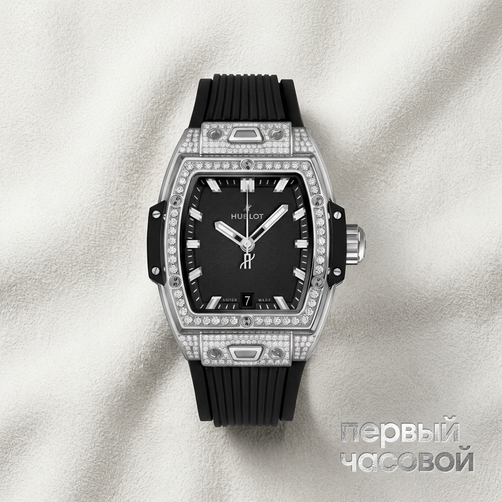 Hublot Spirit of Big Bang в корпусе диаметром 39 миллиметров представляет собой технически сложную интерпретацию формы tonneau, выполненную в концепции Art of Fusion. Корпус изготовлен из титана — материала, выбранного за его высокие антикоррозийные свойства и низкий удельный вес, что критически важно для массивной архитектуры данной модели. Поверхности подвергнуты чередованию сатинирования и полировки, подчеркивающему многослойную геометрию «сэндвич-конструкции». Референс 662.NX.1170.RX.1604 отличается наличием декоративного безеля с инкрустацией, зафиксированного шестью функциональными H-образными винтами из титана. Циферблат черного цвета характеризуется строгой разметкой с накладными индексами, покрытыми люминесцентным составом для читаемости в условиях низкой освещенности, и апертурой даты в положении «6 часов». Работу часов обеспечивает автоматический калибр HUB1710 с запасом хода 50 часов и частотой баланса 28 800 полуколебаний в час. Эргономику завершает структурированный каучуковый ремешок с раскладывающейся застежкой из титана. Экземпляр представлен в состоянии new old stock, полностью сохраняя заводские защитные пленки на корпусе и фурнитуре.