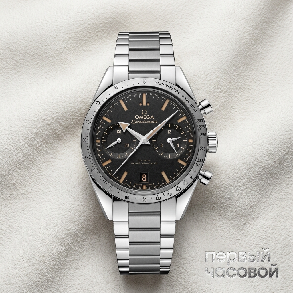 Omega Speedmaster '57 Co-Axial Master Chronometer Chronograph представляет собой современную интерпретацию легендарного референса CK2915, выпущенного в 1957 году. Корпус диаметром 40,5 мм выполнен из нержавеющей стали и отличается архитектурной строгостью линий, характерной для винтажных хронографов середины XX века. Ключевым визуальным элементом выступает сатинированный стальной безель с выгравированной тахиметрической шкалой, включая исторически достоверную деталь «Dot Over Ninety» (DON).