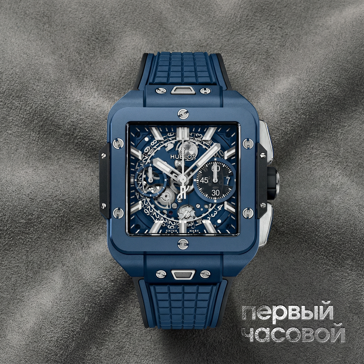 Hublot Square Bang Unico Blue Ceramic (Ref: 821.EX.5170.RX) представляет собой радикальное прочтение геометрии Big Bang, адаптированное под квадратный форм-фактор. Модель 2024 года сохраняет узнаваемую модульную архитектуру корпуса, сочетая в себе авангардные материалы и мануфактурную сложность хронографа с функцией Flyback. Это технически выверенный инструмент, ориентированный на коллекционеров, которые ценят преемственность эстетики Hublot в нетипичном для бренда квадратном исполнении.