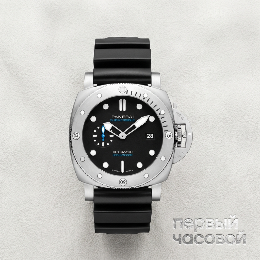 По механике имеем калибр P.900. Это надежный «трактор» с автоподзаводом, который дает честные три дня запаса хода. Для владельца это означает, что можно снять часы в пятницу вечером и надеть в понедельник утром без танцев с бубном и подзавода. Водозащита 300 метров — стандарт для линейки Submersible, убить их водой в реальной жизни невозможно.