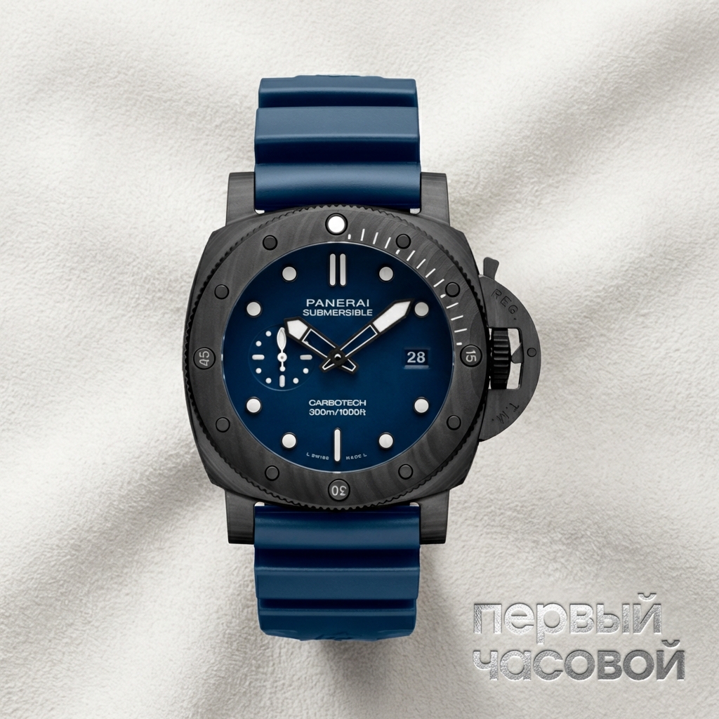 Карбон в исполнении Panerai — это в первую очередь история про эргономику, а не просто про эстетику, так как носить 44-миллиметровый стальной корпус каждый день утомительно, а Carbotech на запястье практически не ощущается. Материал имеет специфическую матовую фактуру, на которой практически не видны мелкие царапины, однако стоит помнить, что композит не поддается полировке и при сильном точечном ударе может получить скол, а не вмятину. Внутри стоит рабочая лошадка P.900 — надежный, ремонтопригодный механизм с автоподзаводом, который честно отрабатывает заявленные три дня запаса хода, позволяя оставить часы на выходные. Синий цвет циферблата Blu Abisso делает эту модель менее агрессивной и милитаристской по сравнению с черными аналогами, переводя ее в разряд отличных часов для отпуска или кэжуал-стиля. Это выбор для тех, кто хочет узнаваемый крупный форм-фактор Panerai, но не готов мириться с тяжестью металла.