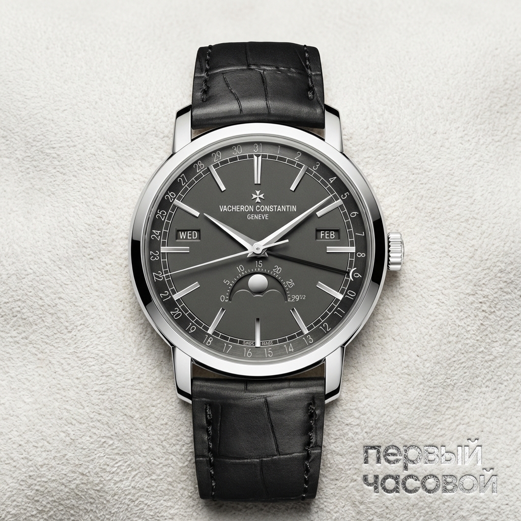 Перед нами попытка «Святой Троицы» выглядеть современно, не теряя лица. Vacheron Constantin в версии Openface — это специфический зверь. Обычно скелетонизированные календари превращаются в нечитаемое месиво, но здесь швейцарцы умудрились сохранить контраст благодаря грифельному покрытию NAC на мостах. Корпус 41 мм из белого золота — это классика, на руке сидит плотно, но помните, что золото — материал мягкий. Зеркальный безель поймает «паутинку» царапин просто от воздуха и манжеты рубашки уже через месяц активной носки.