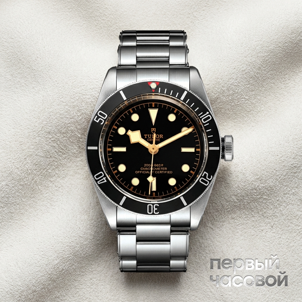 Tudor Heritage Black Bay представляет собой эталонную неовинтажную интерпретацию дайверских инструментов середины XX века. Архитектура 41-миллиметрового корпуса из нержавеющей стали отличается чередованием сатинированных поверхностей и полированных граней, что подчеркивает утилитарное назначение модели при сохранении высокого уровня финишной обработки. Доминантой визуального восприятия служит матовый черный циферблат с позолоченной минутной разметкой и характерными стрелками «Snowflake», обеспечивающими контрастную считываемость показаний через сапфировое стекло.