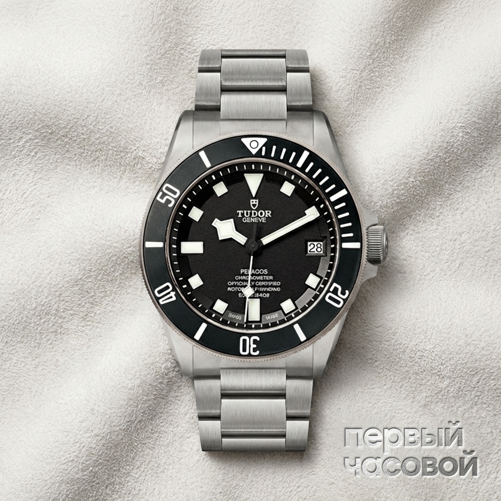 Tudor Pelagos являет собой квинтэссенцию современного инструментального дайверского хронометра, где эстетика полностью подчинена функциональности. Корпус диаметром 42 мм выполнен из сатинированного титана — материала, выбранного за его исключительное соотношение прочности к весу и абсолютную устойчивость к коррозии в агрессивной морской среде. Архитектура модели характеризуется подчеркнуто матовыми поверхностями, исключающими возникновение паразитных бликов, и наличием гелиевого выпускного клапана на боковой грани, что технически обосновывает водонепроницаемость до 500 метров.