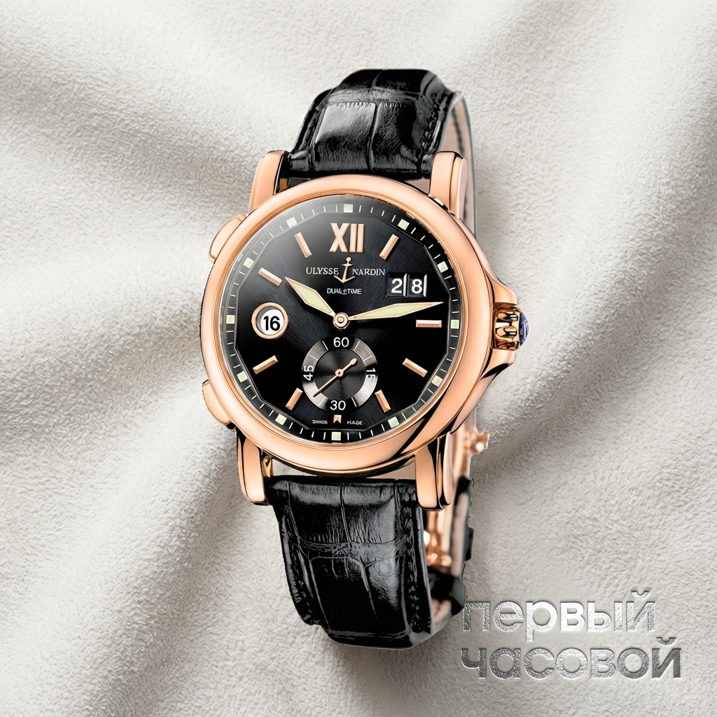 Ulysse Nardin в золоте — это всегда заявление. Модель Dual Time ценю за одну конкретную функцию: систему быстрой смены часового пояса кнопками «плюс» и «минус». Это тот случай, когда инженеры подумали о реальном пользователе: не нужно выкручивать заводную головку и сбивать точность хода при перелете. Калибр UN-24 — надежный «трактор», простой в обслуживании и выносливый.