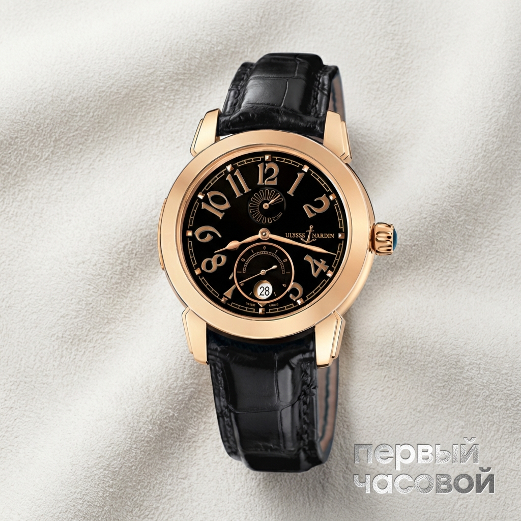 Под сапфировым стеклом разворачивается функциональная композиция, характерная для сложных калибров Ulysse Nardin. Доминирующую роль играет апертура большой даты (Big Date) в двойном окне, уравновешенная сектором индикатора запаса хода или малой секундой в зависимости от модификации. Механический калибр с автоподзаводом, скрытый внутри, является модифицированной версией базового эбоша, доработанной инженерами мануфактуры для обеспечения хронометрической точности и надежной работы модуля усложнений. Водонепроницаемость 50 метров регламентирует использование часов исключительно в рамках повседневного городского цикла.