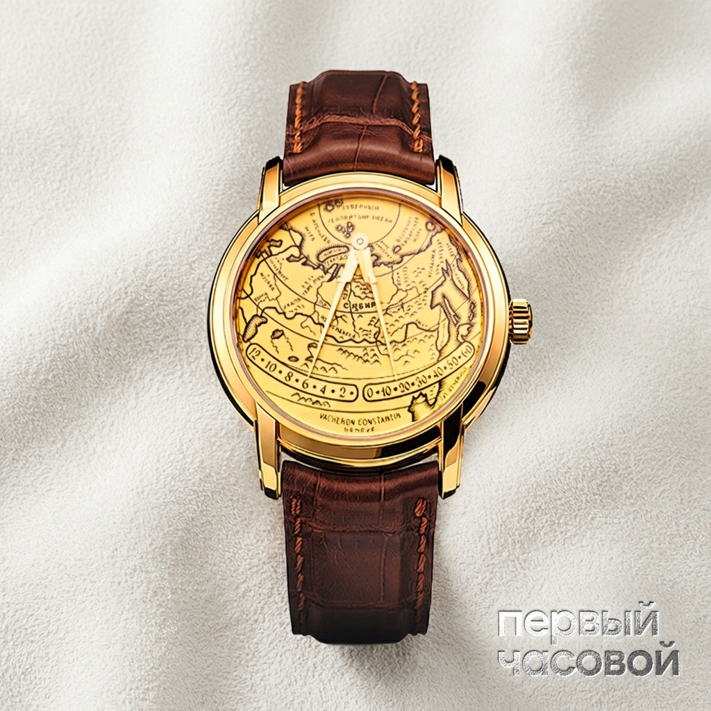 Vacheron Constantin Mercator Reference 43050 представляет собой знаковый образец коллекции Métiers d'Art, выпущенный как дань уважения картографу Герарду Меркатору. Корпус диаметром 37 мм выполнен из желтого золота и отличается классической геометрией со ступенчатым безелем и прямыми, архитектурно выверенными ушками крепления ремешка. Визуальным центром композиции служит уникальная система индикации времени: двойной ретроградный механизм управляет стрелками в форме измерительного циркуля, которые движутся по дугообразным секторам, мгновенно возвращаясь в исходное положение по завершении цикла.
