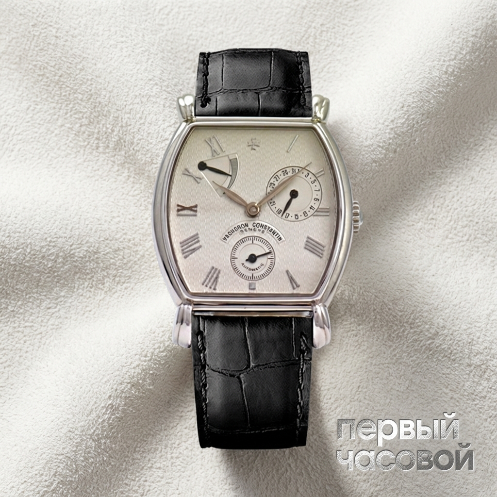 Vacheron Constantin в корпусе «бочка» — это выбор человека, который уже наигрался с банальными круглыми формами. Сразу к делу: перед нами модель Malte, и это тот случай, когда геометрия корпуса решает все вопросы посадки. Размеры 33,5 на 43 мм могут сбить с толку, но на руке часы лежат плотно и ощущаются крупнее цифр благодаря массивным ушкам и тяжести белого золота. Это чистая классика, «костюмник» под запонку, поэтому водозащита в 30 метров здесь номинальная — мыть руки в них не советую. С технической стороны имеем полезнейший индикатор запаса хода (Power Reserve), что для автомата, который носят не каждый день, критически важно. Теперь о минусах: отсутствие коробки и документов — это существенный дисконт при покупке, но и при последующей перепродаже придется объяснять происхождение. С точки зрения ликвидности, форма tonneau всегда сложнее в реализации, чем круг, зато вы получаете «Большую тройку» за вменяемые деньги. Это часы для эгоиста, который берет вещь для себя, а не для инвестиционного портфеля.