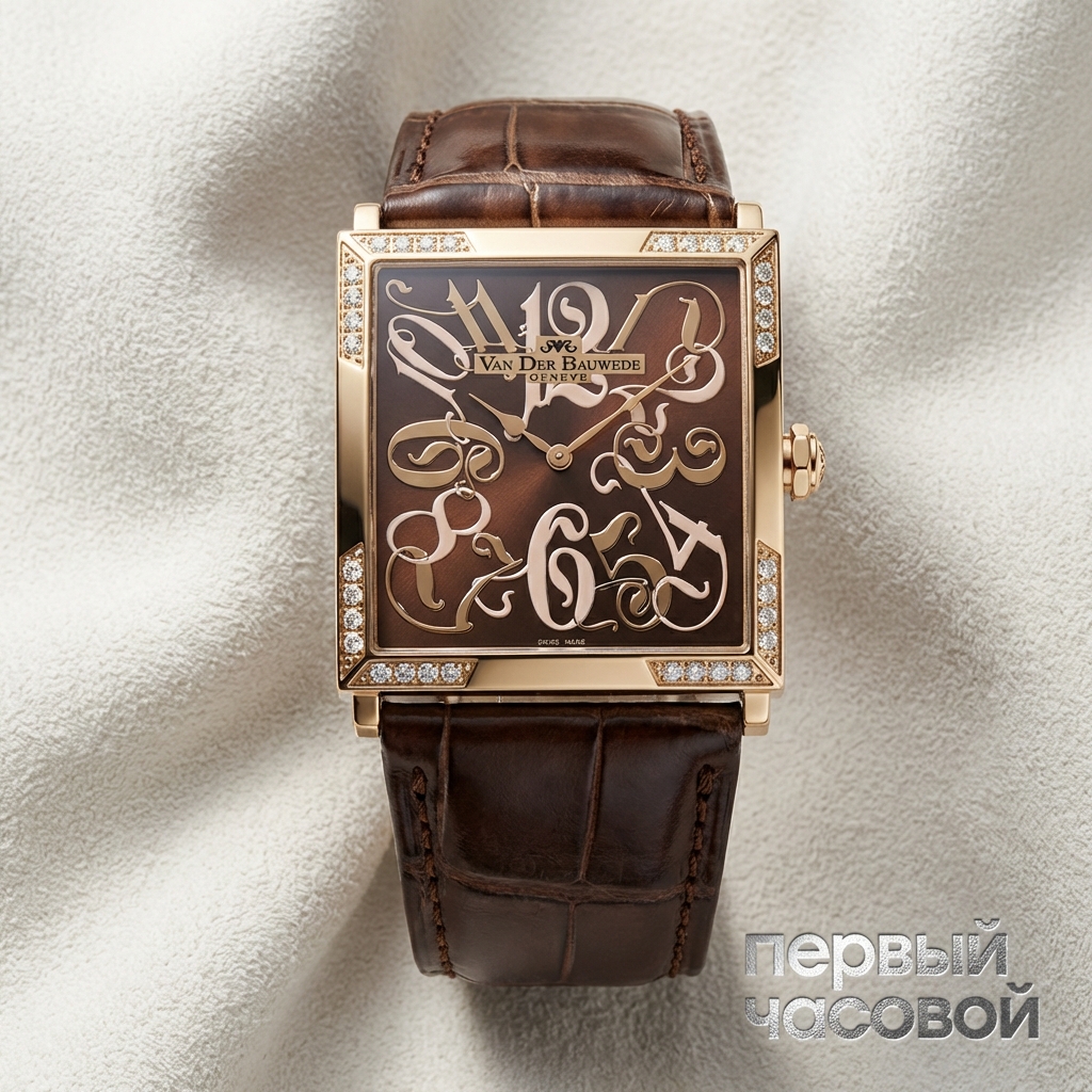 Van Der Bauwede представляет экземпляр, в котором доминирует концепция геометрической строгости и массивной архитектуры. Корпус размером 37 на 37 миллиметров обладает выраженной угловатостью, создавая на запястье визуальный эффект, значительно превосходящий по площади восприятия классические круглые модели аналогичного диаметра. Фронтальная часть защищена сапфировым стеклом, устойчивым к абразивному воздействию, что гарантирует сохранение оптической прозрачности на протяжении длительного срока эксплуатации. Техническая составляющая базируется на кварцевом калибре, обеспечивающем высокую точность хода и автономность, исключая необходимость постоянной корректировки времени. Водонепроницаемость корпуса на уровне 50 метров классифицирует изделие как устойчивое к случайным брызгам и бытовой влаге, но не предназначенное для глубоководных погружений.
