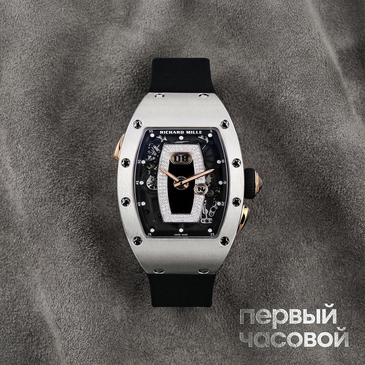 «Richard Mille — это всегда про инженерные понты, за которые не стыдно. Модель RM037 маркетологи любят называть женской, но размер 52 мм высотой говорит об обратном: это серьёзный аппарат, который на тонком запястье будет выглядеть как приборная панель болида F1. В данном случае это комплимент. Корпус из белого золота с NTPT-карбоном и бриллиантами — редкое сочетание. Обычно RM либо "голые" и технологичные, либо увешаны камнями до неприличия, а здесь баланс соблюден идеально.